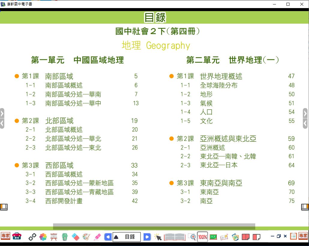 108學年下學期 國中 康軒版 地理電子書 2年級(含課本、習作含解答)教學光碟DVD版