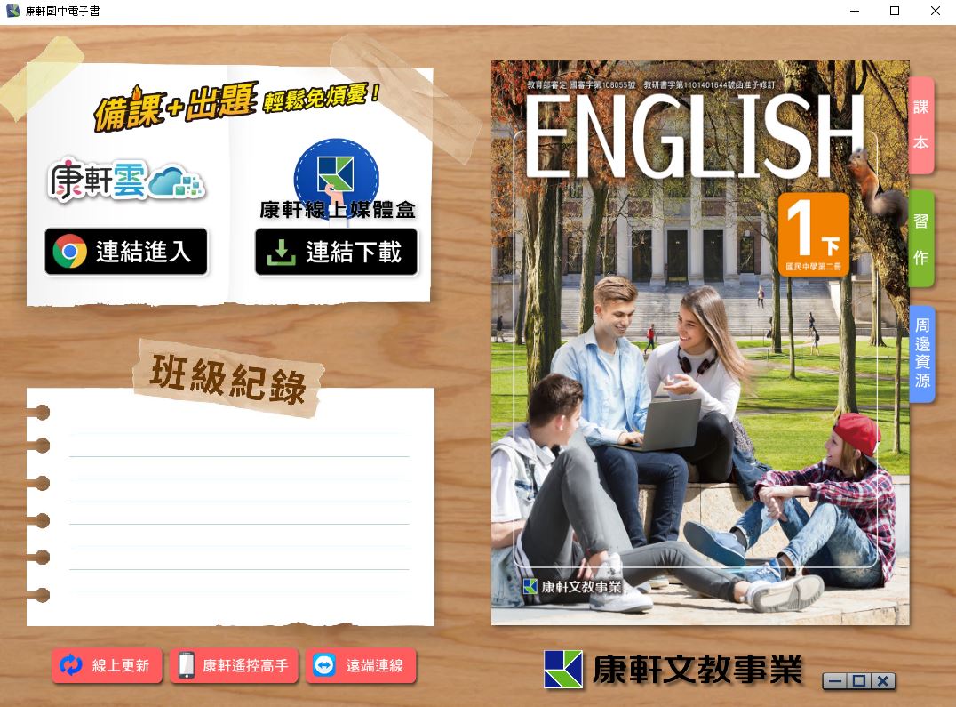 111學年下學期 國中 康軒版 英語電子書 1年級(含課本、習作含解答、教學資源)教學光碟