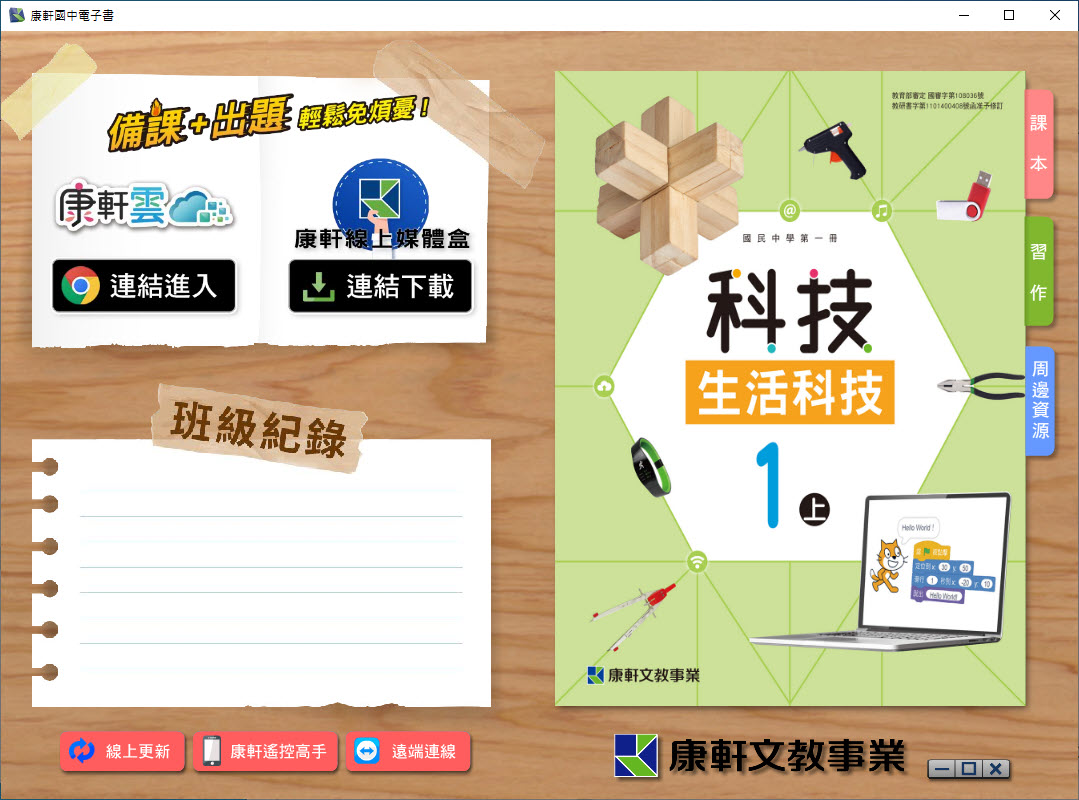 112學年上學期 國中 康軒版 生活科技電子書 1年級(含課本、習作含解答、教學資源)教學光碟