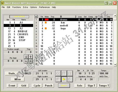 Sweet Sixteen MIDI Sequencer v3.3.5 英文正式版(MIDI音樂創作編輯軟體)