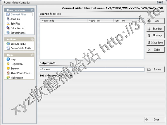PowerVideoConverter是一款在AVI,Divx,xvid,MPEG1,MPEG2,VCD,SVCD,DVD,WMV,ASF,