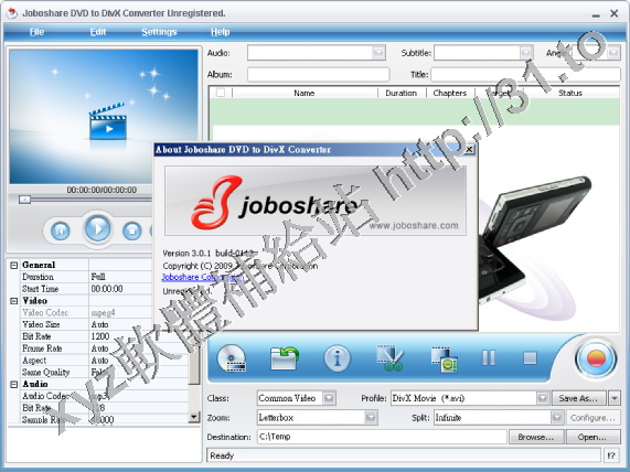 Joboshare DVD to DivX Converter v3.0.6.0330 英文正式版(音視頻轉換軟體)